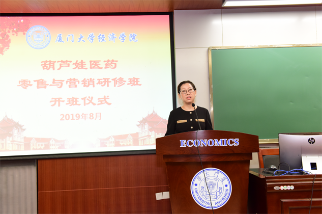 8月31日,红蓝医药零售与营销研修班开班仪式在厦门大学经济学院举行,为期8天的“厦大红蓝班”正式拉开帷幕。厦门大学经济学院继续教育中心主任廖景峰先生与红蓝药业集团董事长刘景萍女士分别在开班仪式上致辞,中国医药物资协会研究院执行院长代航先生担任本次研修班班主任并主持开班仪式。