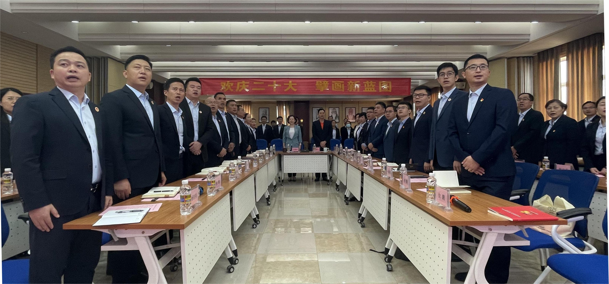 最后,刘景萍董事长要求公司上下对于党的二十大报告,要长期坚持学习、要与工作结合起来学习、要在学习和工作中不断总结,并提出相关要求:一是进一步提高政治站位,清醒认识到党的二十大精神是指导企业、引导企业高质量发展的行动纲领;二是坚持以党建为企业发展的长期抓手,坚持发扬斗争精神,敢于斗争、善于斗争,在工作中充分展现红蓝人有担当、能打仗的优秀品质;三是领导干部带头学,在集团内掀起全员学习的热潮;四是在人才引进、项目认定、绩效考核等工作上与党的二十大精神保持一致。
