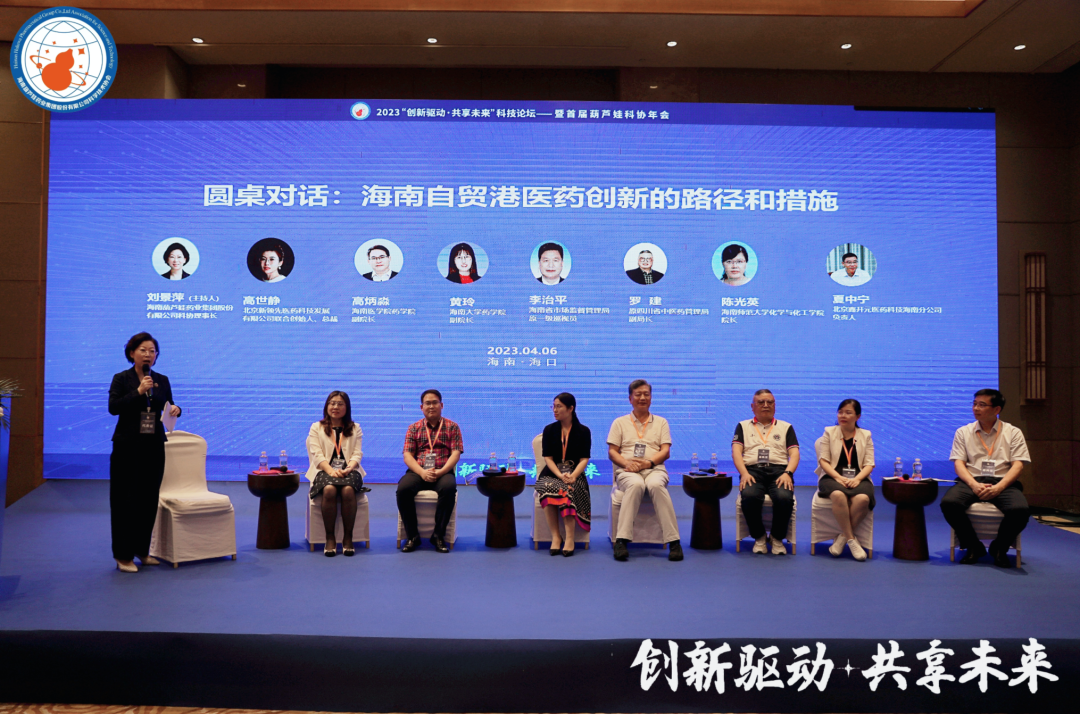 四川省中医药管理局原副局长罗建、海南省市场监督管理局原一级巡视员李治平、海南大学药学院副院长黄玲、海南医学院药学院副院长高炳淼、海南师范大学化学与化工学院院长陈光英、北京鑫开元医药科技有限公司海南分公司负责人夏中宁、北京新领先医药科技发展有限公司总裁、杭州康领先医药科技有限公司总经理高世静等,在主题为“海南自贸港医药创新的路径和措施”的圆桌论坛中积极献策。红蓝药业集团董事长、红蓝药业科协主席刘景萍主持论坛。