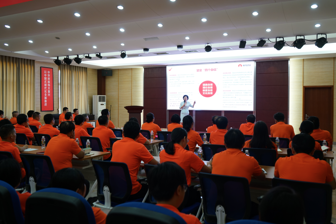 在党课的最后,刘景萍书记对公司全体党员和管理干部在思想和行动上提出了“转变思想、团结一致、分工明确、协作高效”的十六字工作要求,并从新形势、新挑战、新任务的角度对红蓝药业集团下半年的工作提出了三个方面的要求:坚持学在深处,在理论思想上培根铸魂;坚持谋在新处,在深化变革上攻坚克难;坚持干在实处,大兴调研之风,在推动发展上担当作为。